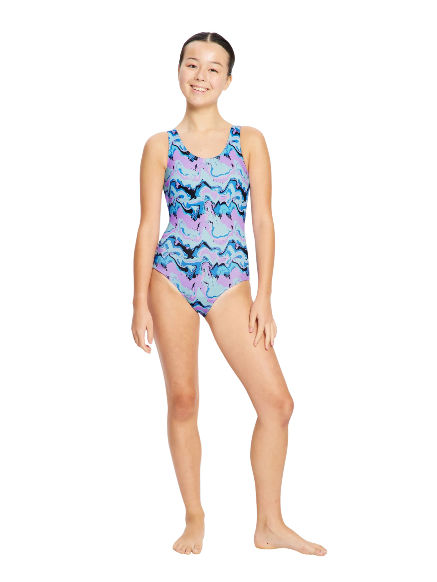 Dívčí menstruační plavky Modibodi Performance Racerback One Piece Super Marble Blue jednodílné (DMPMPROPSMB)