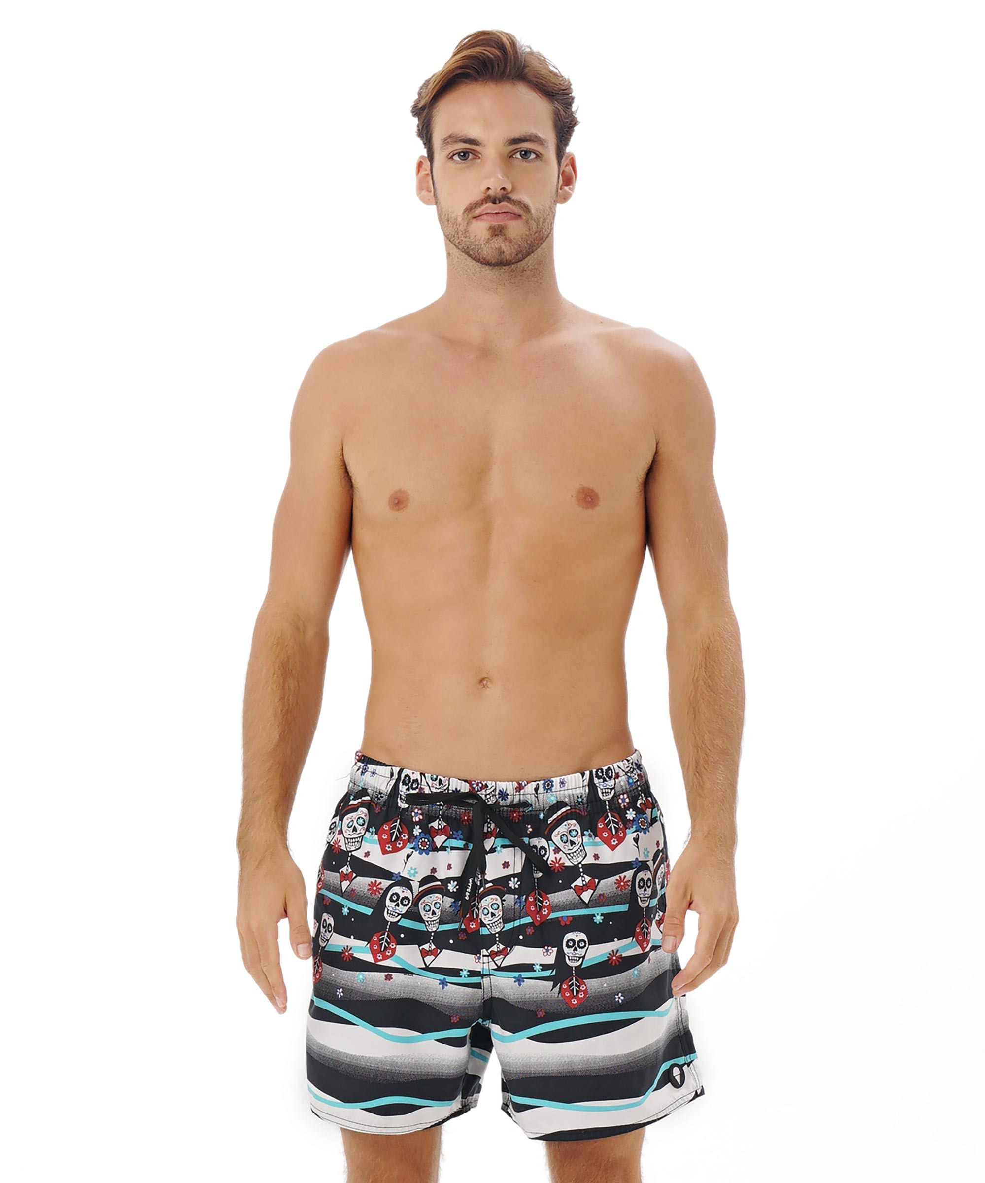 Klasický střih zajišťuje pohodlné nošení a zároveň dostatečné krytí. V pase se nachází pevnější elastický pruh doplněný šněrováním, díky kterému si můžeš plavky snadno přizpůsobit. Nechybí ani praktická boční kapsa na suchý zip, ideální na drobnosti, které chceš mít po ruce.