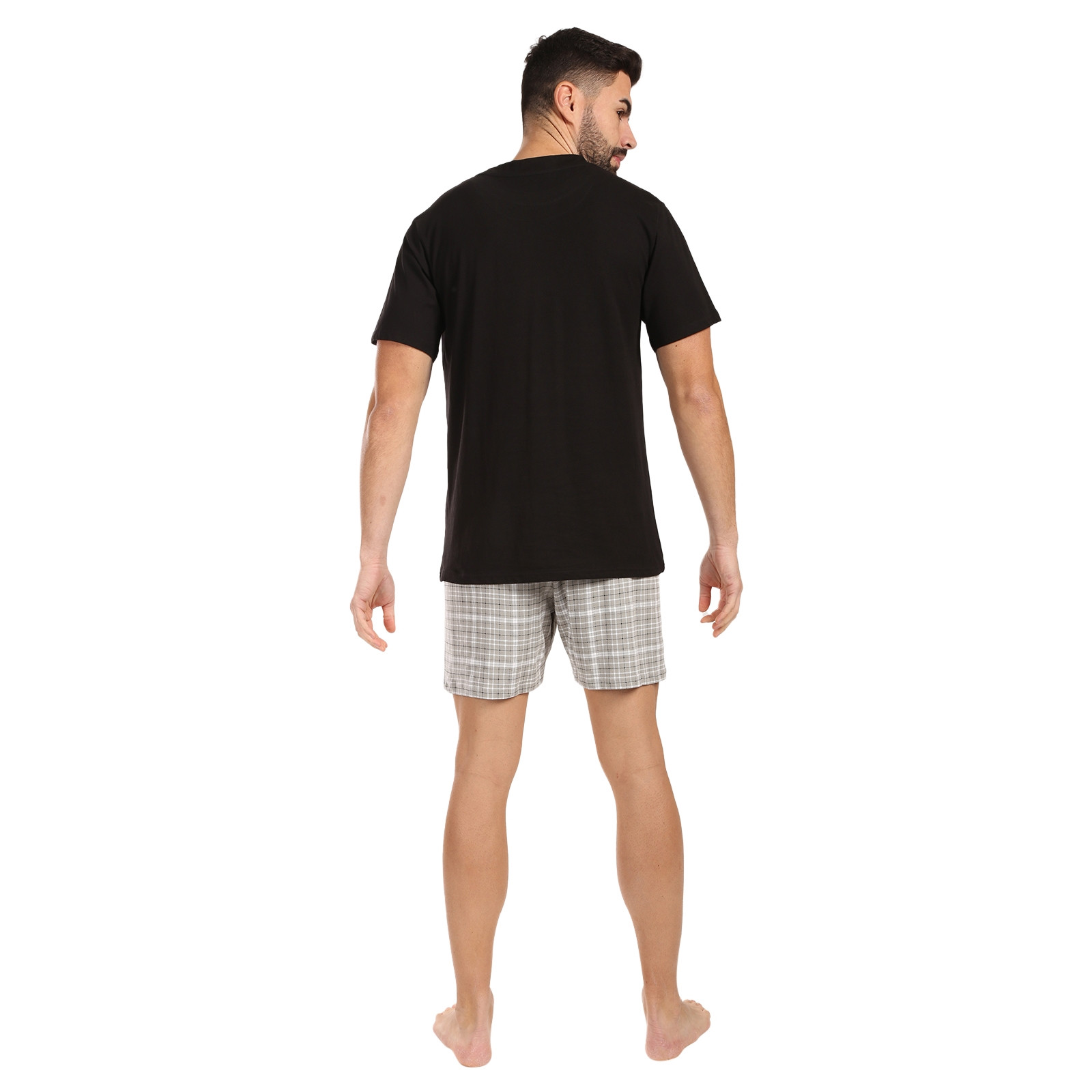 Tohle prádlo je jasným důkazem, že pánské pyžamo stále patří do šatníku současného muže. Horní díl s krátkým rukávem je ideální pro jaro, léto i celoroční nošení v teplejším prostředí. Spodní díl tvoří trenky s pohodlnou klasickou gumou v pase, která dobře drží a přitom netlačí. Vzdušný střih oceníš nejen v posteli, ale i při domácím lenošení.